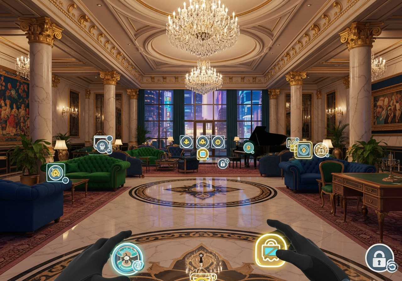 Le jeu est conçu pour une exploration en room-scale. Pour jouer à ce jeu de puzzle VR, je recommande un espace de 2 m × 2 m. Chaque pas dans votre pièce correspond à un pas dans l’hôtel, ce qui procure une immersion totale. Si vous n’avez pas assez d’espace, des commandes alternatives vous aideront à vous déplacer virtuellement. Cette liberté de mouvement ajoute une dimension physique unique aux énigmes.