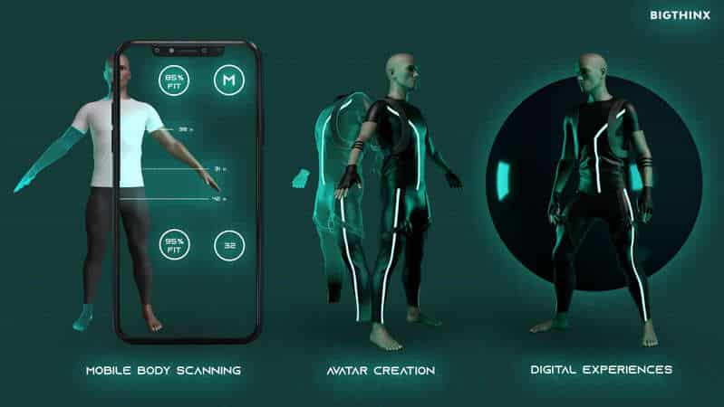 Les réseaux de neurones de BigThinx réalisent un scan corporel 3D en utilisant seulement deux photos d’un smartphone. Ils calculent les mesures précises du corps entier. Cela déterminera la correspondance instantanée de la taille et la coupe des vêtements. Cela témoigne de la magie de la réalité virtuelle mariée à l’intelligence artificielle.