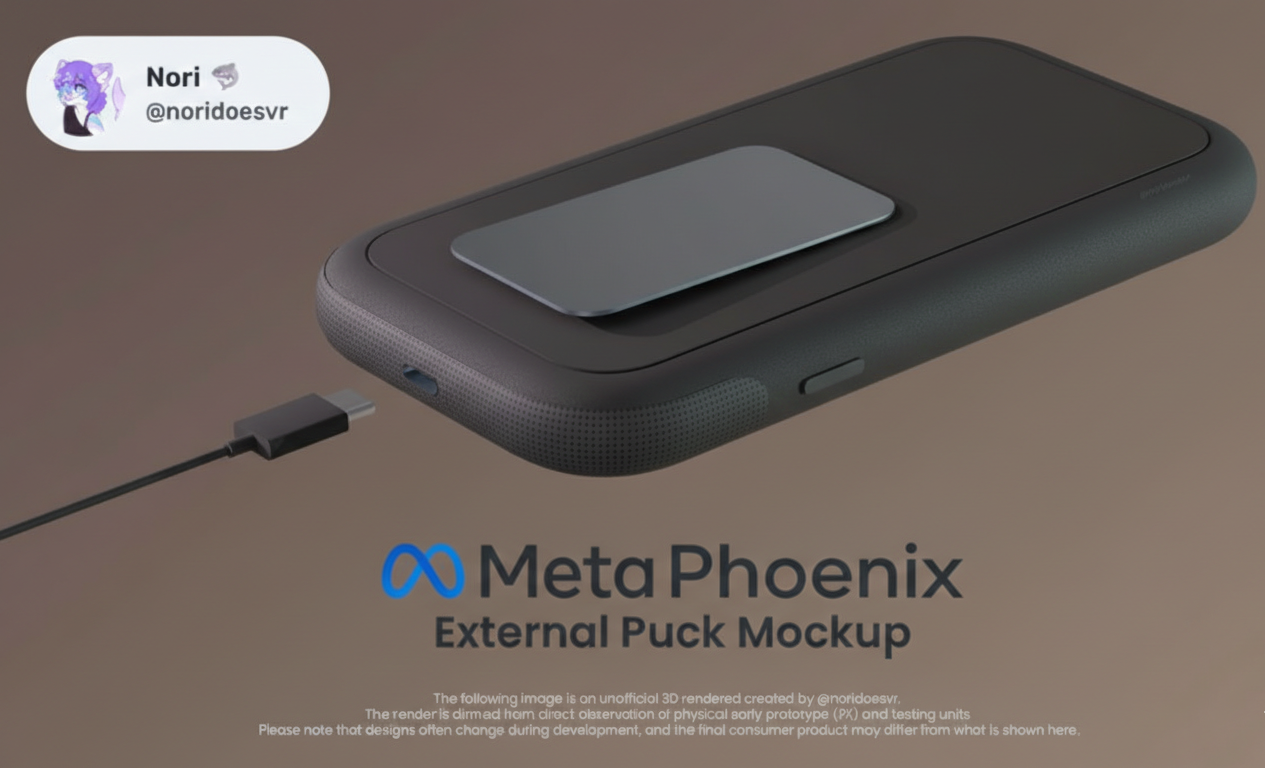 Les premières maquettes du Meta Quest 4 ont fuité grâce aux leakeurs Luna et Noridoesvr. On y voit un casque beaucoup plus fin que le Quest 3. Celui-ci est accompagné d’un boîtier externe avec ventilation et pince pour la ceinture.