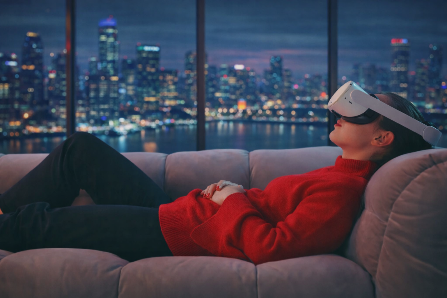 Avec le Meta Quest 3, visionner des films ou des séries peut se faire en réalité virtuelle. Le casque inclut une option, le mode Allongé, qui met le confort au centre de l’expérience. Elle permet de s’installer dans une position relaxante sans perdre en immersion.