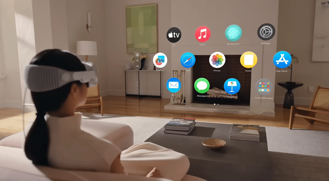 La vidéo débute avec l’annonce saisissante : « Présentation de l’Apple Vision Pro. L’ère de l’informatique spatiale est arrivée ». Elle continue en expliquant qu’en portant le casque, vous percevez le monde réel devant vous, plutôt qu’un environnement virtuel. Nous sommes ensuite amenés à voir l’interface des applications flottantes. Elle nous fait également découvrir une nouvelle méthode d’interaction. Celle-ci implique l’utilisation des yeux pour la sélection et des doigts pour les clics.