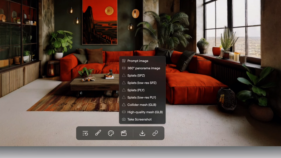 En quelques secondes, Marble génère une scène 3D navigable. Vous pouvez littéralement « marcher » dans votre futur salon, changer la lumière du jour pour voir comment le soleil tape sur le parquet à 18h, et déplacer les meubles virtuellement.